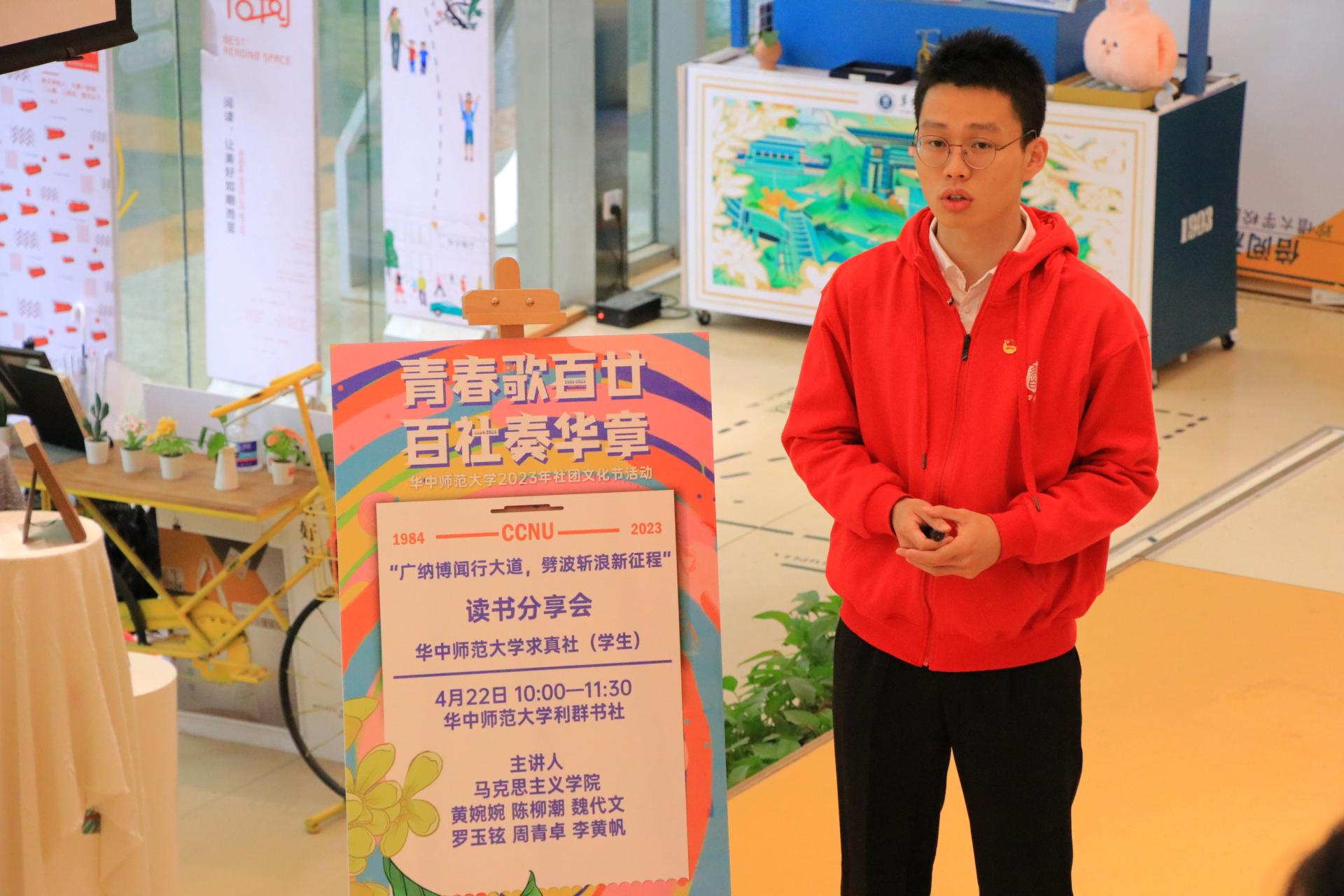 华大青年讯(通讯员 李黄帆)4月22日上午,马克思主义学院“广纳博闻行大道,劈波斩浪新征程”读书分享会在利群书社举办。马克思主义学院副教授孟飞作为嘉宾出席本次活动,马克思主义学院2021级硕士生陈柳潮,2022级硕士生黄婉婉、魏代文,2021级本科生罗玉铉,2022级本科生李黄帆、周青卓参与本次读书分享会。本次读书会由马克思主义学院团委、学生会青年发展中心举办,王欣雨任主持人。