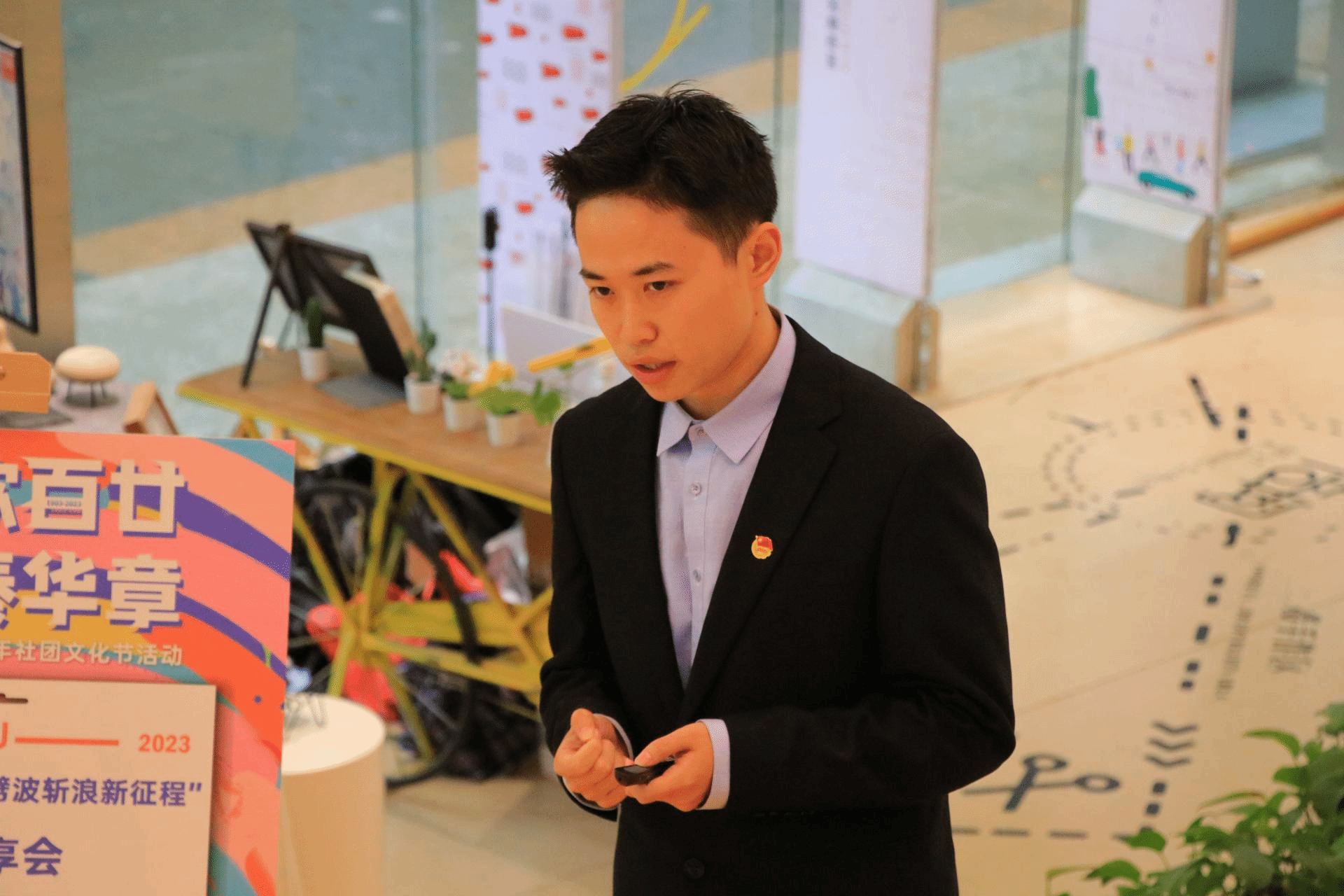 在师生共研二十大环节,孟飞点评六位主讲人的分享,并联系二十大报告进行拓展。他指出,中国共产党始终坚持以人民为中心的价值取向,始终坚持经济、政治、文化、社会、生态五位一体全面发展,当代青年应该学习并贯彻这些思想,在新时代有所作为。在中国与世界日益紧密结合的时代,当代青年作为时代的参与者和助力者,要有面向世界的胸怀,传播中国声音,担当起中国青年的历史使命。罗玉铉同学感触良多,他结合自己阅读《苦难辉煌》一书的经历,从“将熟悉的知识陌生化”“细节的坐标连接化”和“感性与理性的转化”三个维度回顾中国老一辈革命家的光辉岁月。