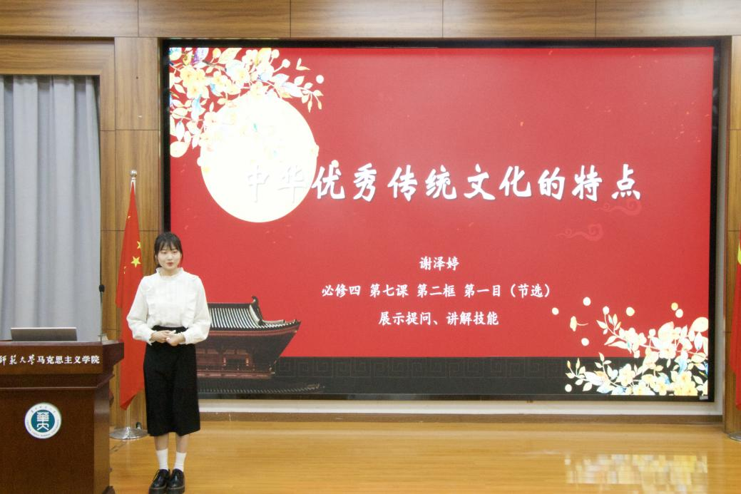 选手谢泽婷在讲授“中华优秀传统文化的特点”时,以“猜灯谜”这一传统习俗引入,巧用“月”的意象分析中华优秀传统文化的特点,将学生代入到具体情境中,增强学生对中华优秀传统文化特点的理解。选手龚若楹以《只此青绿》舞蹈诗剧引入,对中华优秀传统文化“创造性转化与创新性发展”的内容进行讲解,并将讲授法与提问法相结合,引导学生进行视频欣赏与小组探究活动。