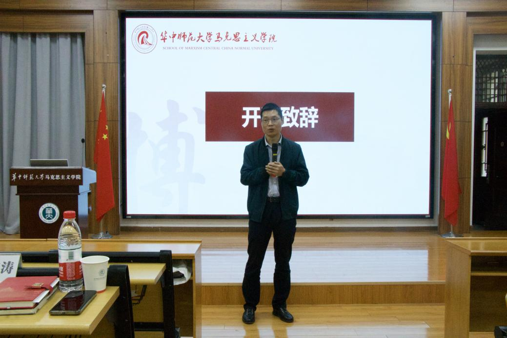比赛伊始,邵彦涛副院长为本次讲课大赛致辞,他指出“青年领袖恽代英讲课大赛”活动对坚定马院师范生理想信念、提升马院师范生站稳讲台的能力有着重要意义,同时他勉励马院师范生要扎实理论基础,传递新思想,将课本知识讲深、讲透、讲活。致辞结束后,主持人杜思佳介绍讲课大赛决赛规则与具体流程,并宣布比赛开始。