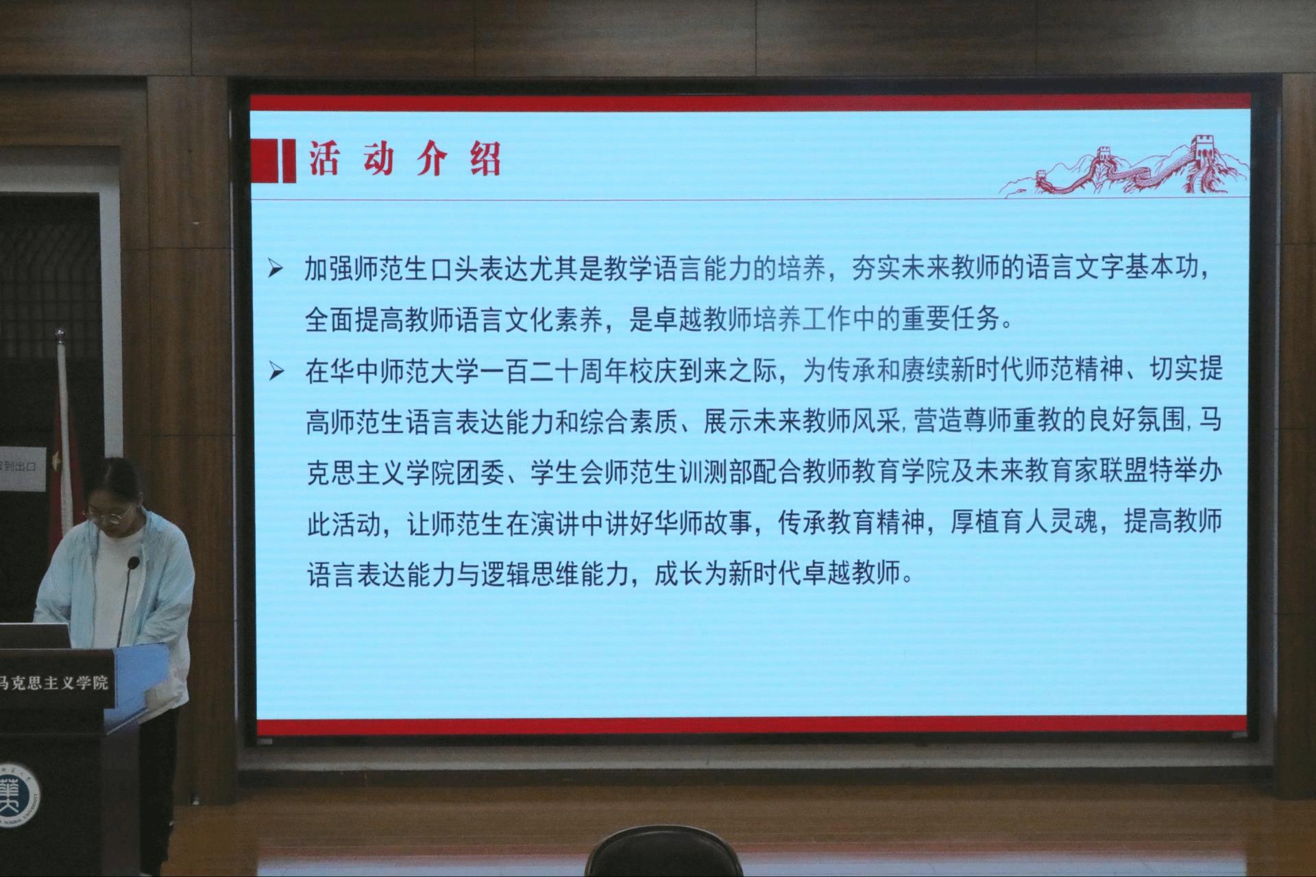 讲好普通话是师范生必备技能之一。本次比赛旨在切实提高马院师范生语言表达能力和综合素质,营造尊师重教的良好氛围,让马院师范生在演讲中讲好华师故事,传承华师精神,展现马院学子风采。