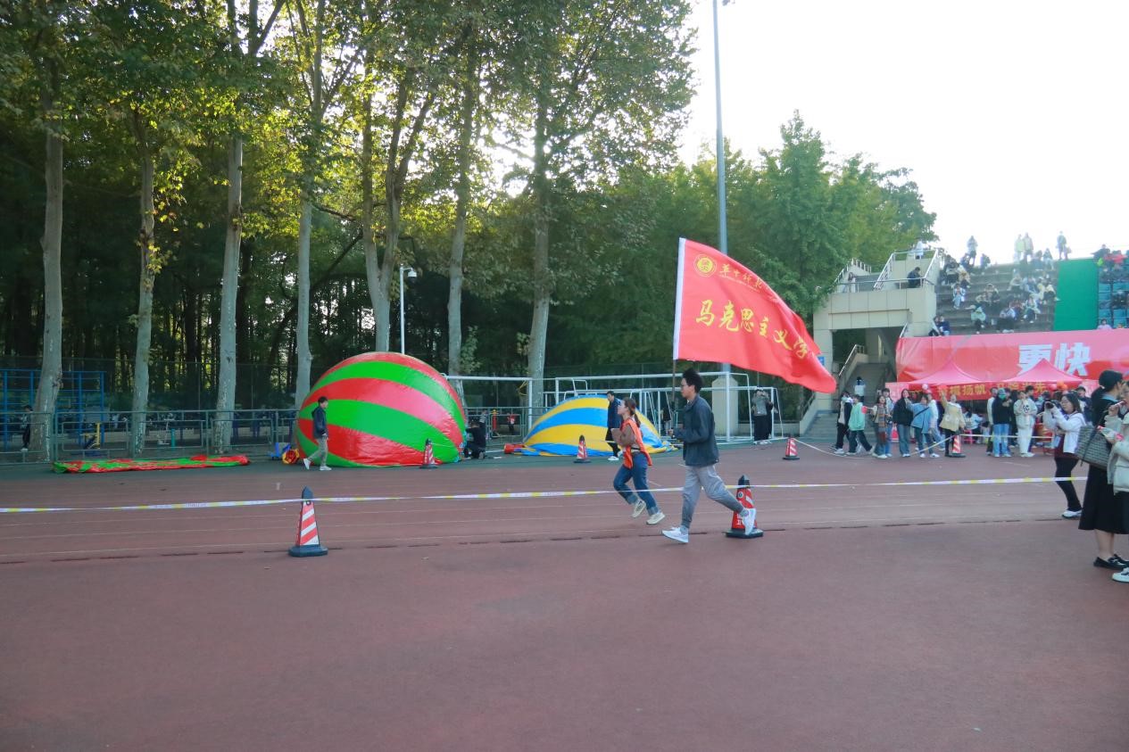 比赛过程中,马院的志愿者们一边挥舞着院旗一边全程陪跑。飘扬的马院院旗激励着运动员们不断拼搏,奋勇争先。最后,马院的四位运动员都凭借自己顽强的意志力,在一声声同学们的欢呼声中完成了自己的比赛。