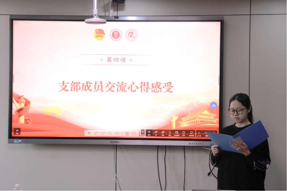 会议第二阶段,进行青马团支部本学期第一次团日活动。王丹琳带领支部成员集体学习习近平总书记在湖北考察时的重要讲话精神。习近平重要讲话精神突出创新引领,重视乡村振兴、改革开放,为湖北的发展明确了战略定位和目标任务,让湖北在全国发展大局中的角色更加清晰,助力湖北在全国发展竞争中抢占先机。团支部成员们全神贯注,认真记录下要点和感悟。此次专题学习,加深了大家对习近平总书记重要讲话精神的理解,更激发了团员青年们投身社会建设的热情。在交流心得感受的环节,支部成员纷纷表示要发挥自身优势,为社会主义建设贡献青春力量。最后,全体成员重温入团誓词,铮铮誓言,铿锵有力,再次明确了自己共青团员的身份,牢记使命和担当。