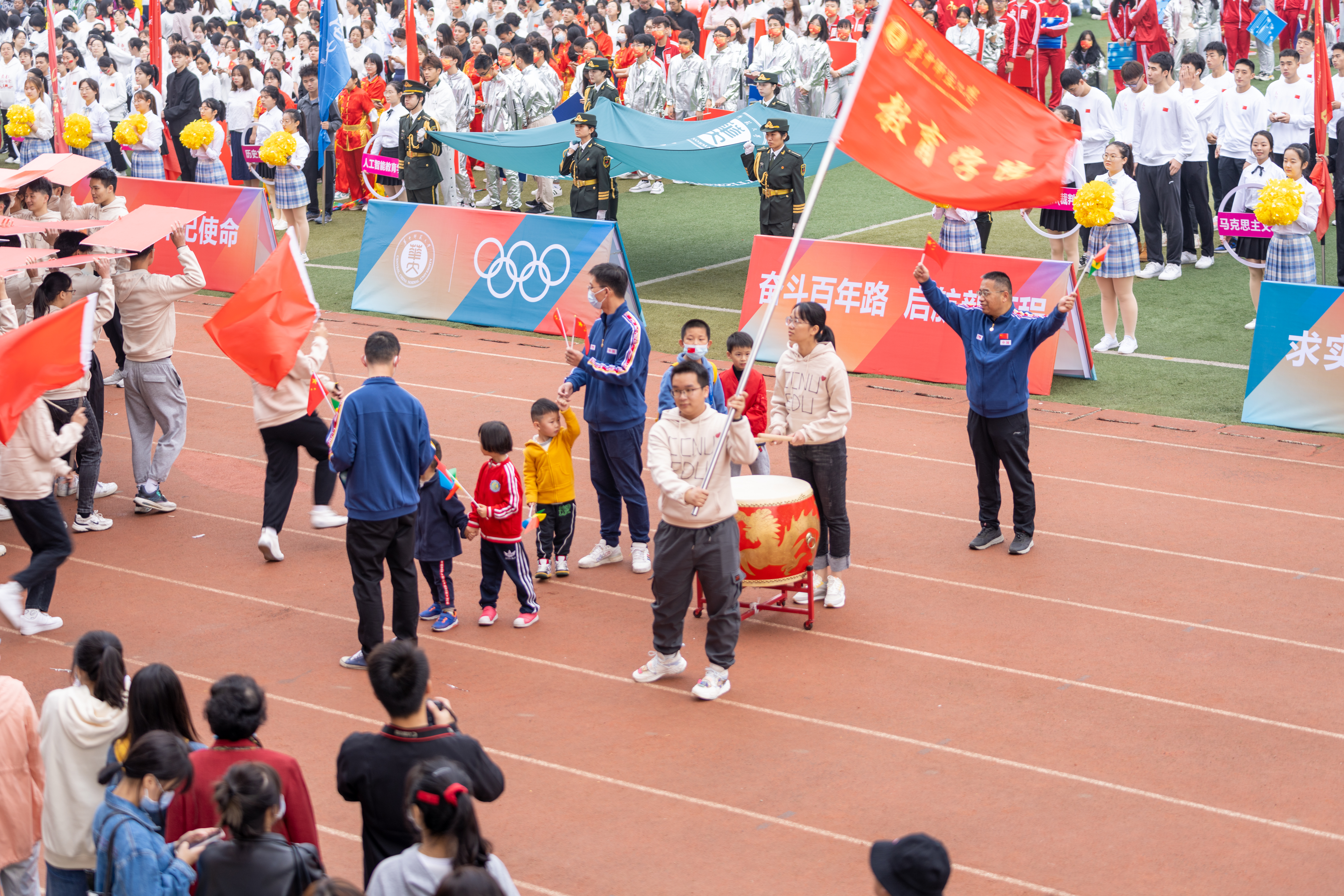 华大青年讯(通讯员 陈祯盈 赵恒健)11月5日上午,华中师范大学2021年校运动会开幕式在佑铭体育场举行。本次开幕式共有40个学校单位参与入场式队列行进,教育学院方阵位于第36个出场。