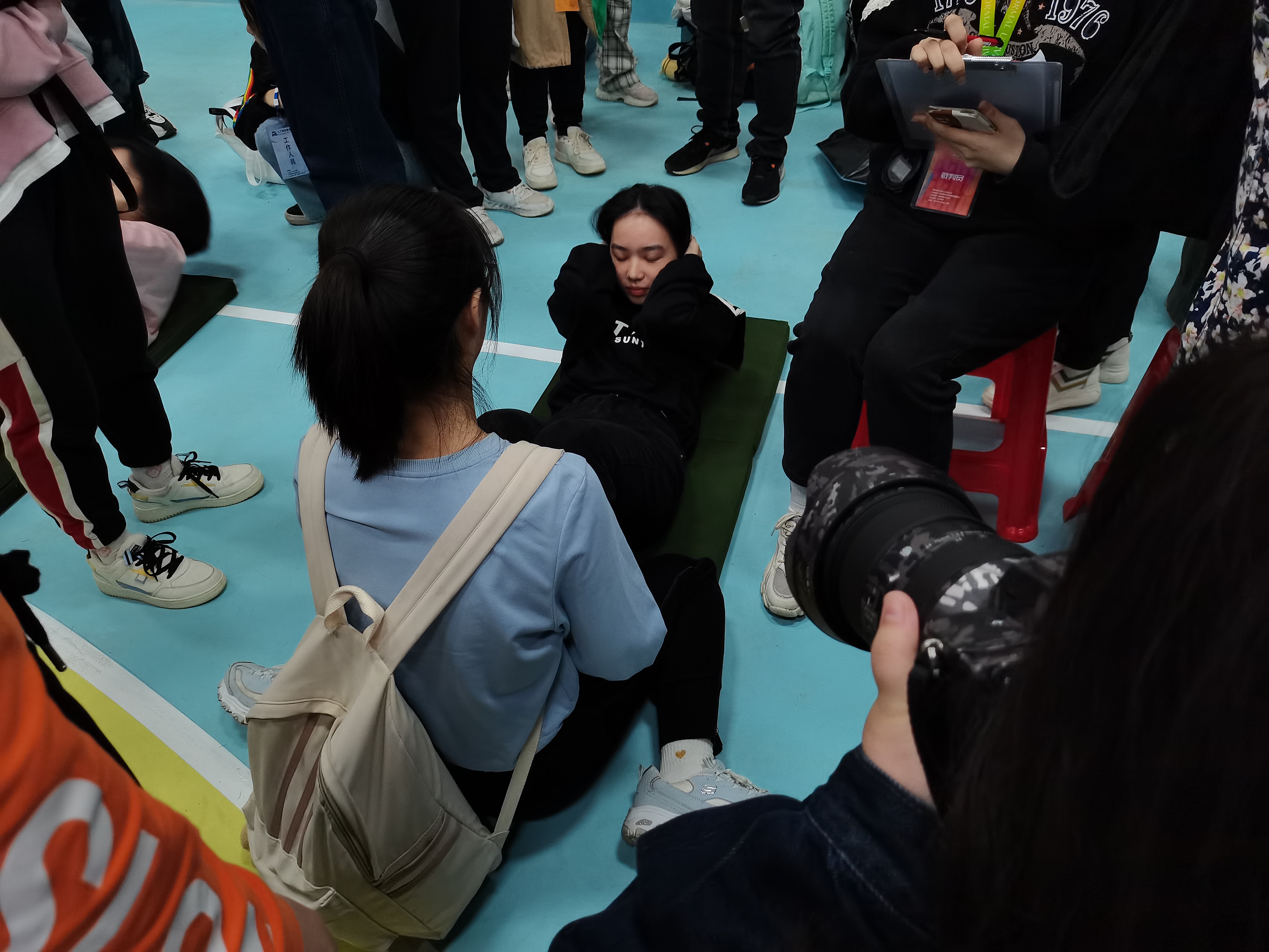 仰卧起坐是一个考察运动员核心力量的体育项目。比赛一开始,教院选手们就收紧核心,迅速进入运动状态。飞快的一起一落之间,展现出的不仅是与时间的激烈拼搏,更是在蓬勃青春中的一鼓作气、坚定意志。