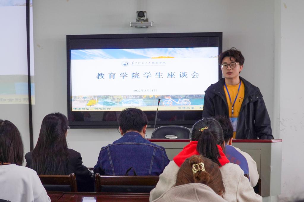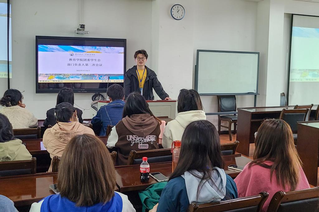 华大青年讯(通讯员 陈祯盈 赵恒健)3月31日,教育学院学生座谈会暨团委学生会部门负责人会议于田家炳教育大楼601教室举行。教育学院团委书记刘雅欣出席本次会议,团委副书记(学生)、学生会主席团、各部门负责人及各班学生代表参会。会议由学生会主席团成员万义辉主持。