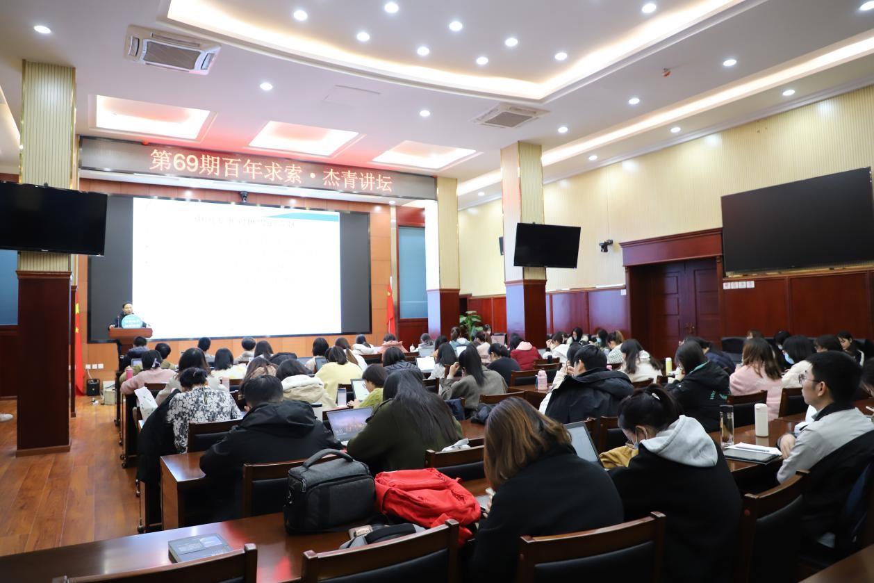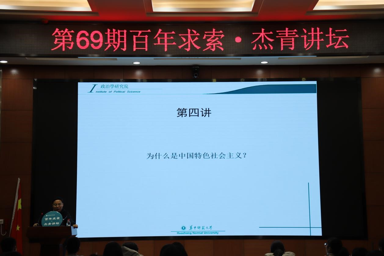 华大青年讯(通讯员 车孟书)11月24日晚,由华中师范大学研究生会主办,政治与国际关系学院研究生会、马克思主义学院研究生会承办,文学院研究生会、教育学院研究生会协办的第69期“百年求索·杰青讲坛”在文华公书林模拟联合国报告厅举行。政治研究院周华平副教授带来了题为“中国经济社会发展成就与经验启示”的专题讲座,我校100余名研究生参与此次讲座。