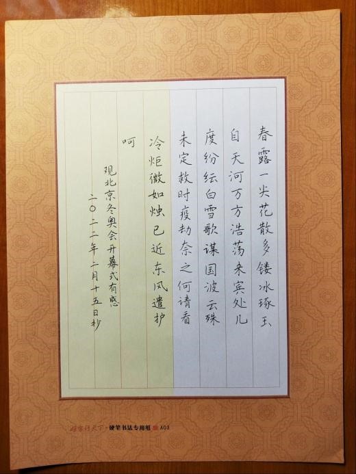 有不少同学观看北京冬奥会开幕式和冰雪比赛后感受很深,他们用诗歌歌颂北京冬奥会歌颂祖国。华师政国院20级本科生游曾轲挥笔写了下一首《观北京冬奥会开幕式有感》: