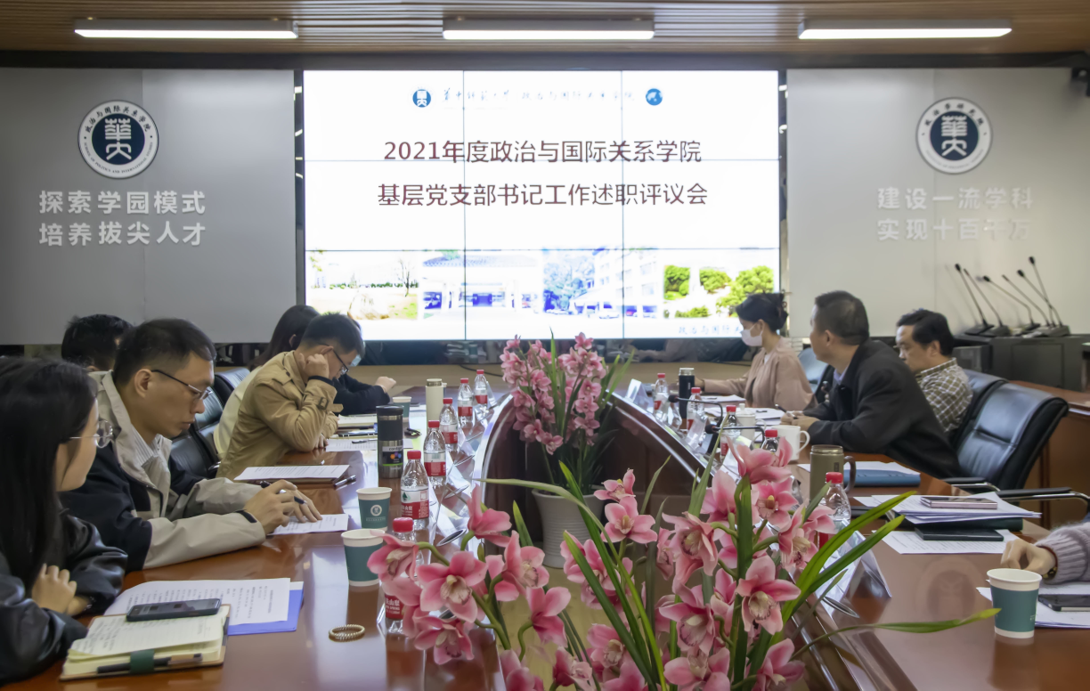 华大青年讯(通讯员 续静怡)3月14日上午,政治与国际关系学院(以下简称:政国院)于313会议室举行了2021年度党支部书记述职评议会。出席本次会议的有党委书记段维、党委副书记潘广炜、副院长王建国、副院长黄辉祥、学生代表彭颖琛、学生代表付睿思以及各党支部书记。本次会议由党委副书记潘广炜主持。