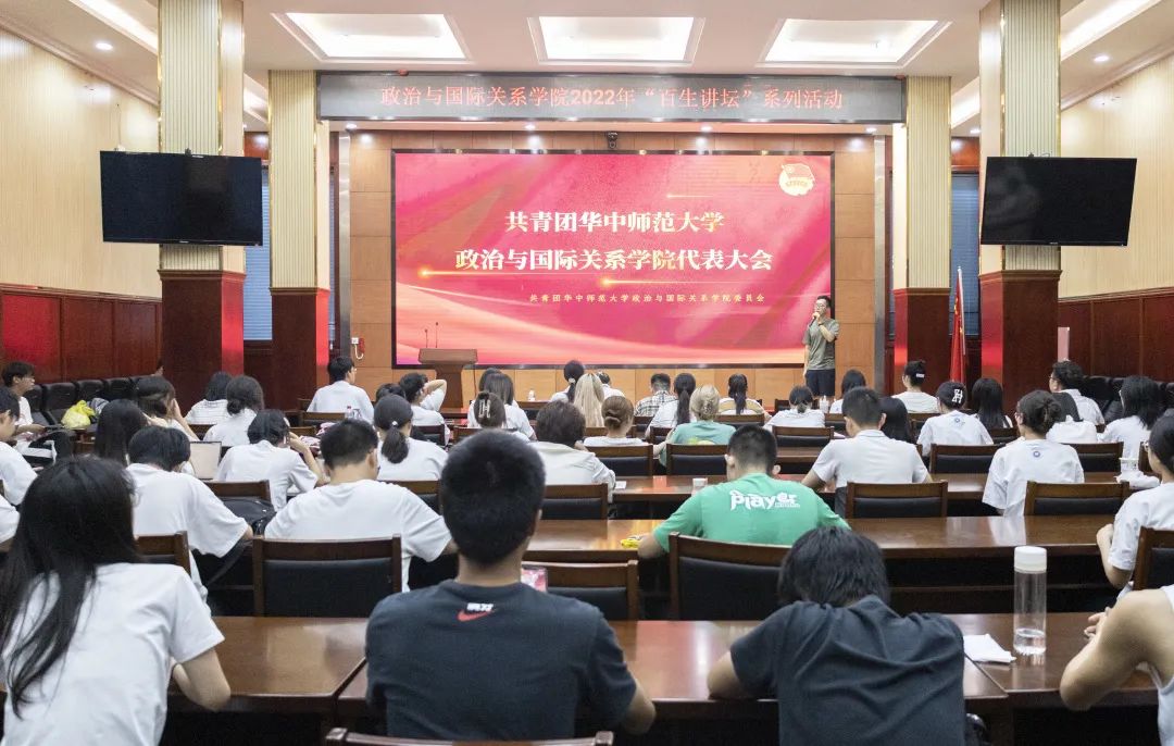 华大青年讯(通讯员 张佳睿)为推进习近平新时代中国特色社会主义思想进支部、进社团、进网络、进团课,激发广大青年学习新思想的热情,9月16日晚,学院于文华公书林四楼模拟联合国会议室举办“百生讲坛”活力团支部及优秀主讲人评选活动。该活动由院团委筹办,院团委书记魏露、研究生辅导员沈国成、本科生辅导员郑泓韬出席,全体2021级本科生参加。活动由2022级研究生张赛、2021级本科生葛梓涵主持。