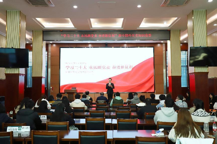 华大青年讯(通讯员 钟香禹)11月17日,由政治与国际关系学院国际政治系教工党支部书记工作室主办的“学习二十大 永远跟党走 奋进新征程”新中国外交史知识竞答在模拟联合国实验室举行。活动由国际政治系2022级硕士生党支部书记郑泓韬主持,院党委书记段维、院长胡宗山、国际政治系教工党支部书记赵宁宁、国际政治系教工党支部成员陈婉玉出席,各党支部学生党员参加。
