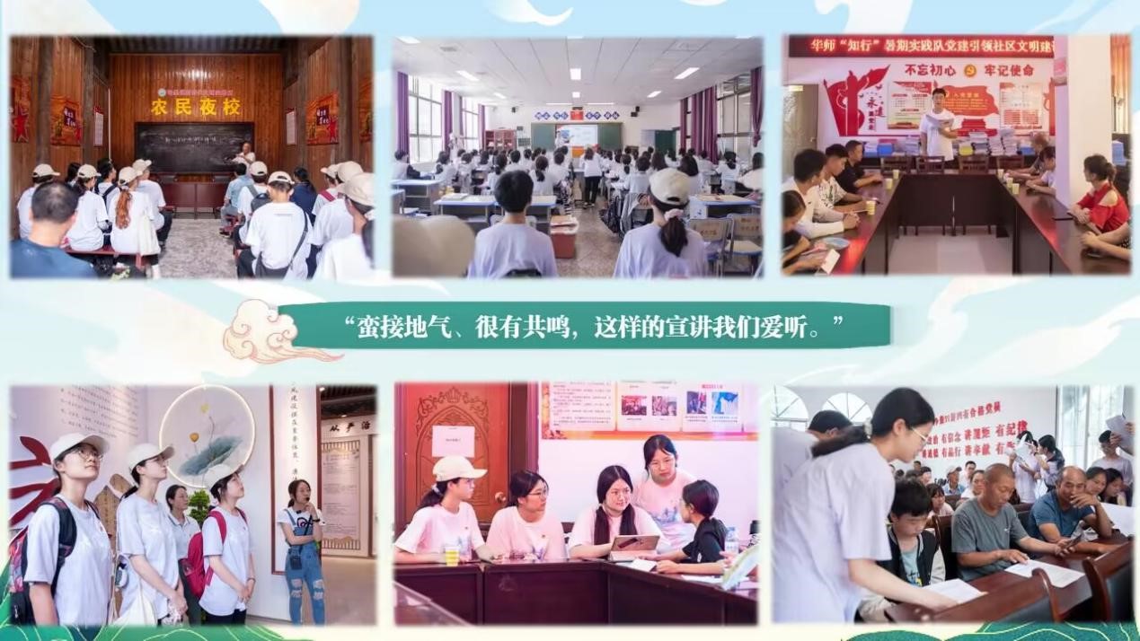 俗话说:“走进稻田才知道稻苗长得挺不挺,走进农家才知道村民过得好不好。”只有从象牙塔走向泥土地,坚持理论与实际相结合,方能在基层实践的“大熔炉”里得到淬炼,让青春在党和人民最需要的地方绽放绚丽之花。暑假期间,她与学院同学们一起深入湖北恩施鹤峰县开展助力乡村振兴的实践活动,把党的创新理论送进学校、乡村、社区。村民们都说:“蛮接地气、很有共鸣,这样的宣讲我们爱听。”村民们的反应让她收获了成就感,也让她更加坚定以青春之火助力乡村振兴的决心。