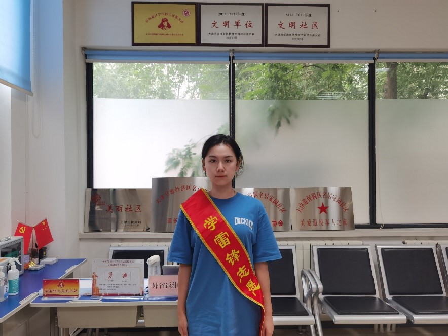 “时光未央、岁月静好,是因为有人在替我们负重前行。”一代代共产党人的故事像炬火,深深地温暖着她的内心。“有一份光、发一份热”,她坚定“人生须自为,青年勇担当”的信念,积极主动报名参加天津港保税区名居花园居委会举办的新时代雷锋志愿者服务活动。她随社区人员一同,准备核酸检测物资、接听居民来电、登记返津人员信息、开展未成年人宣传教育活动、为退伍军人发放米面粮油、耐心帮助不会使用智能手机的老年人……志愿服务过程中,她感受到了“为人民服务”的深刻内涵。她说:“‘投身于为人民服务的伟大实践’从来不是一句空话,而是沉甸甸的责任与实实在在的付出。”
