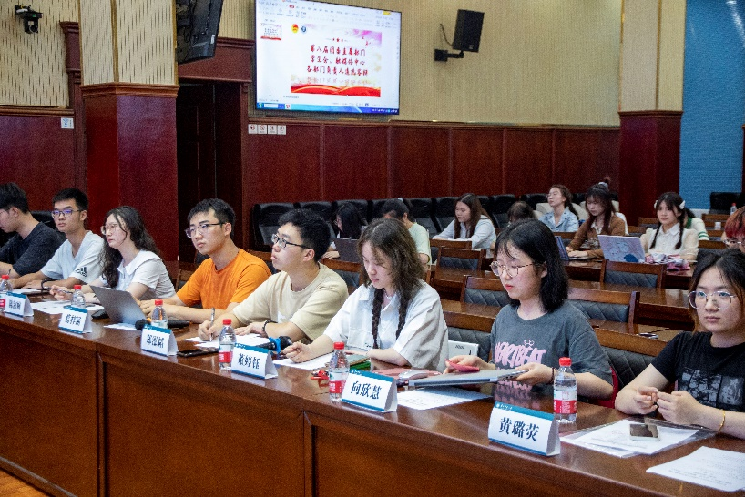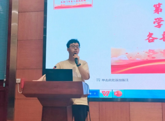 郑泓韬作总结发言。他首先强调各部门候选人要增强对答辩工作的重视程度,坚定提升自我能力的信心。他希望各部门候选人作为团学骨干的一员,要在各自的岗位上自觉担当尽责,发挥纽带作用,提高服务师生的质量,在工作中既提高综合能力,又善于总结提升,以努力进取、勤于开拓的心态将各部门的工作成效提升至新高度。