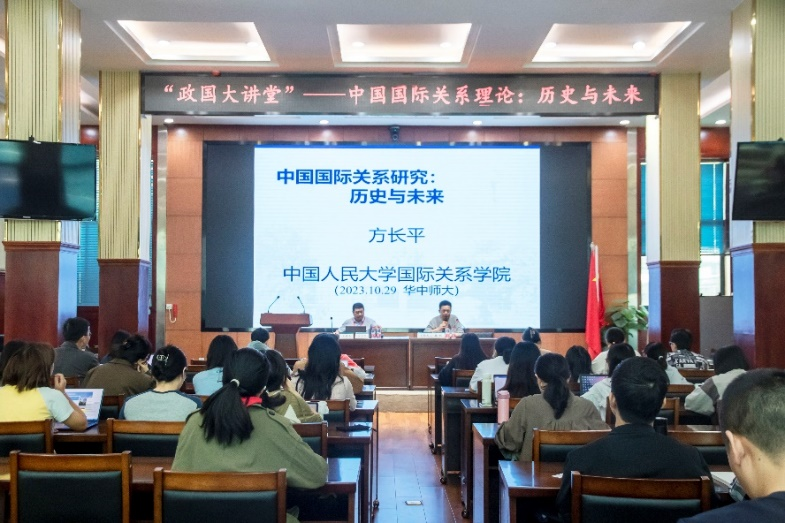 华大青年讯(通讯员 田雅颂)10月27日至29日,由华中师范大学政治学部、华中师范大学政治与国际关系学院主办的政国大讲堂·国际关系研究学术周系列学术讲座于模拟联合国实验室举行。中国人民大学国际关系学院教授、国际关系专业博士生导师方长平作了题为“中国国际关系理论:历史与未来”的学术讲座。政治与国际关系学院国际政治专业2021、2022级硕士生、博士生以及部分本科生集中聆听。讲座由政治与国际关系学院教授戴轶主持。