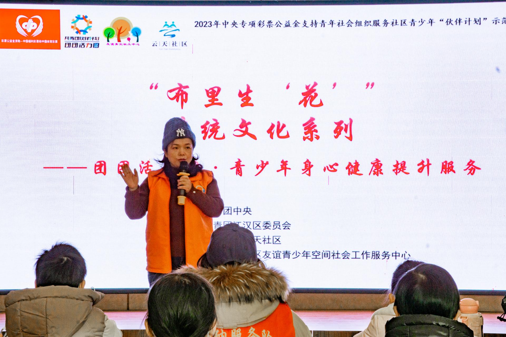 活动负责人对在场的云天社区居民及志愿者的参与表示感谢,并强调了本次活动对青少年身心成长的积极意义以及注意事项。志愿者王虹茜带来有关传承非遗文化的宣讲。非遗文化是中华民族源远流长的历史中留下的灿烂瑰宝,是凝聚先辈智慧与卓越价值的精神财富。青春不止有一种姿态,传承与创新都是当代青年不可舍弃的责任。