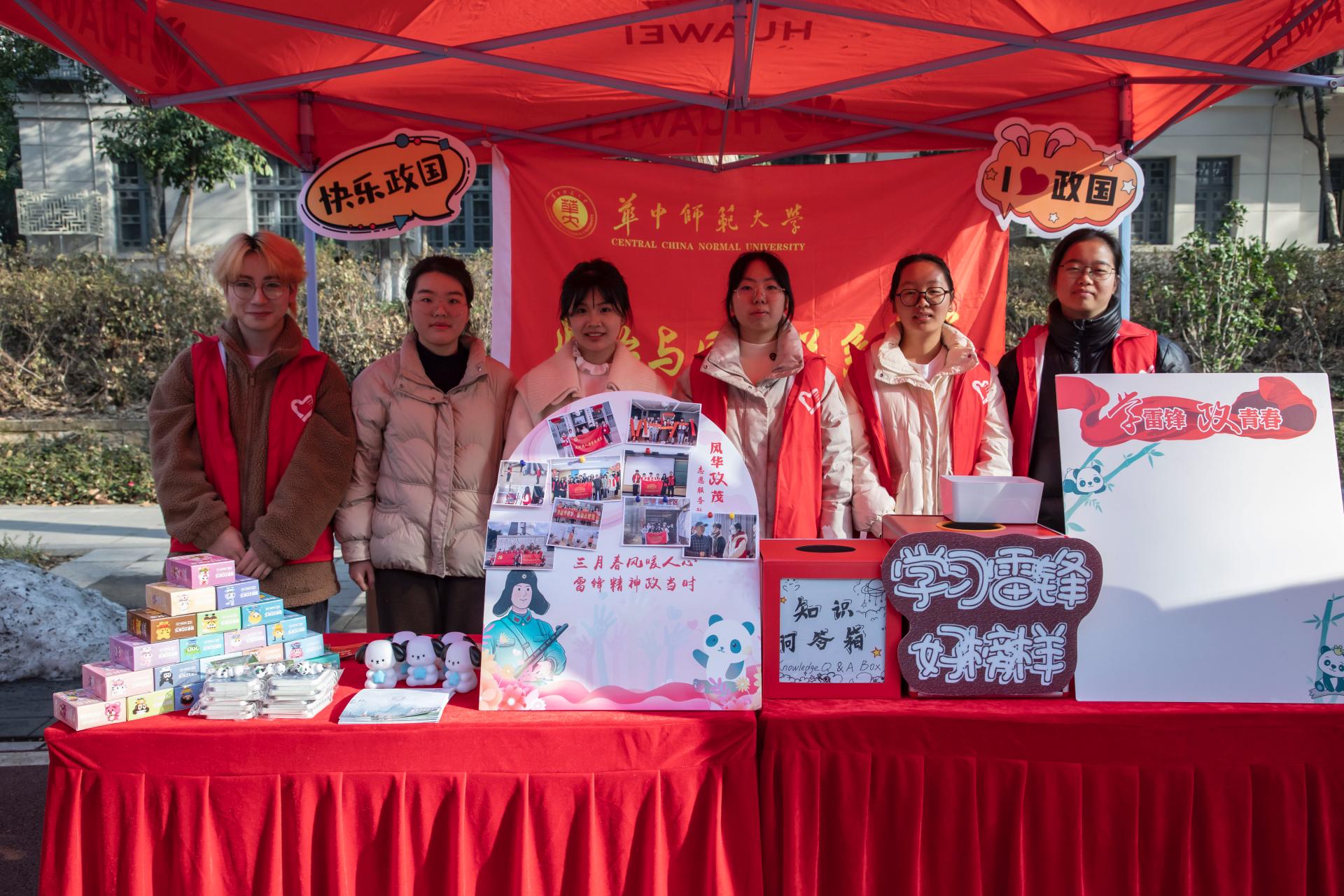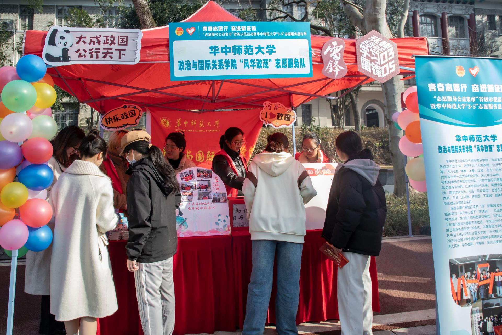 华大青年讯(通讯员 李曼洲 李淳祎)3月3日,“志愿服务公益集市”省级示范活动暨华中师范大学“3·5”志愿嘉年华活动在桂中路举行。政治与国际关系学院“风华政茂”志愿服务队参与展示并组织开展“学雷锋精神,追璀璨微光”志愿嘉年华活动。