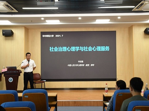 华大青年讯(通讯员 吴艳玲 郭畅)7月5日下午,“社会治理心理学与社会心理服务”学术沙龙于华中师范大学N8060报告厅举行,本次沙龙邀请到中国人民大学心理学系教授辛自强担任主讲人。本次沙龙针对如何正确理解和定位社会心理服务体系建设进行了详细说明,并向参与活动的人员简要介绍了社会治理心理学这一新兴领域。