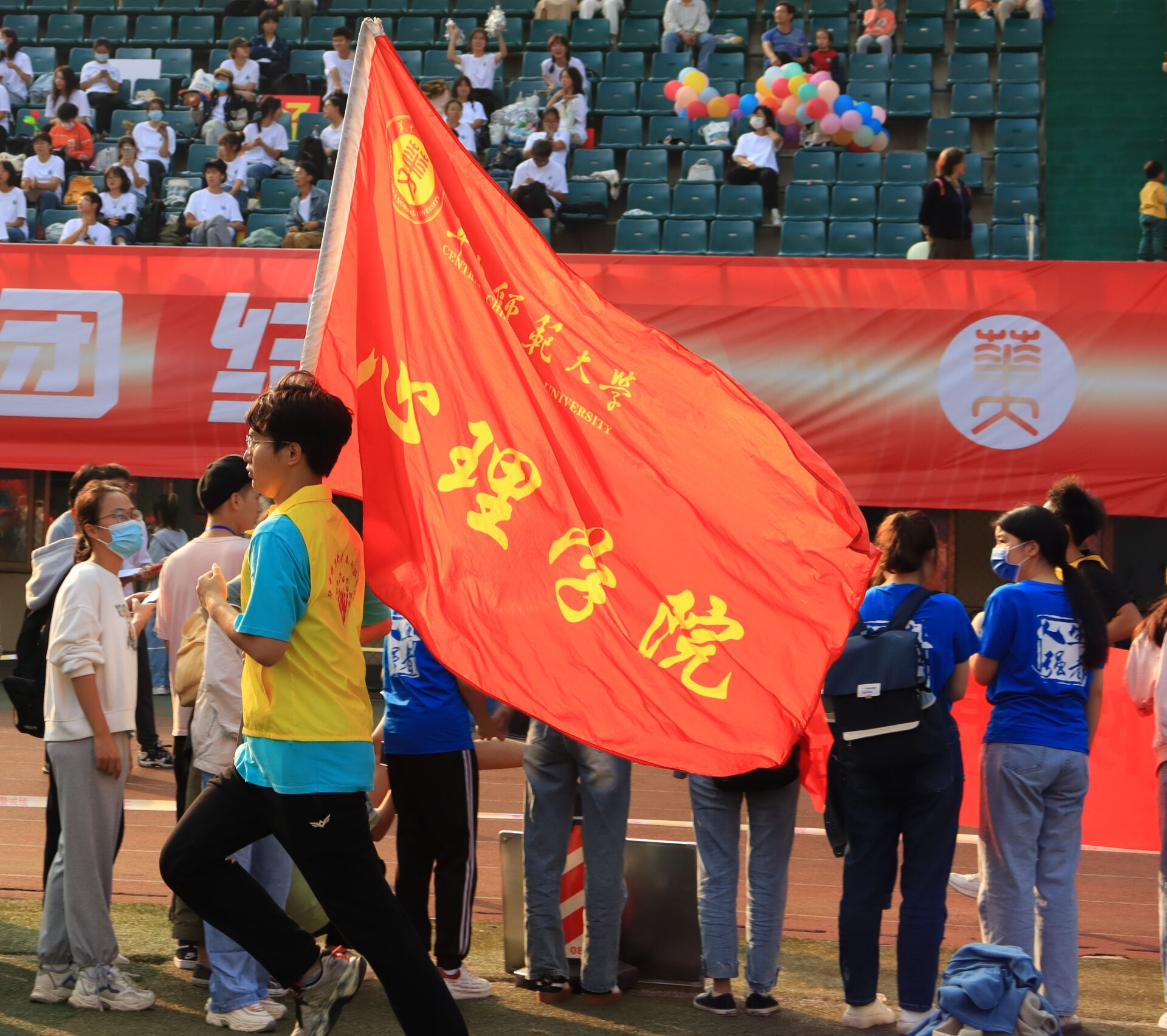 在本次校运会的志愿者团队中,还有一位特殊的志愿者。他既是男子1500米的参赛选手,又是1500米的举旗陪跑志愿者。他就是心理学院2021级的陈冠龙。在被问及参加完1500米的比赛后又去当陪跑志愿者的原因时,陈冠龙笑了起来:“我陪跑的那一组,我们心院的参赛选手是20级的陈华健学长。在跑步这方面,他是我的榜样。今年他已经大三了,这可能会是他人生当中最后一次参加运动会,所以我希望可以陪他跑一程,算是我对我的榜样的一种致敬。”