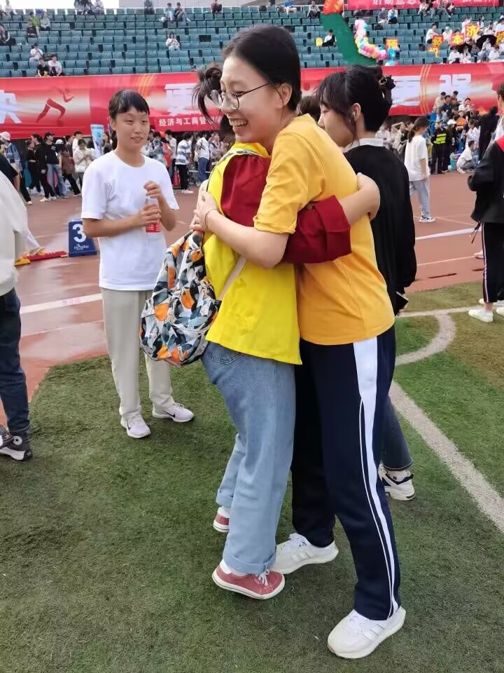 同样自发担任陪跑志愿者的,还有心理学院2022级年级主席郭伦涛。他在接受采访时说:“跑步也是我的一项爱好。但是因为承担了许多学生工作,又因为身体旧伤,我没能报名参加运动会。其实心里是很遗憾的。现在能陪着上场的同学跑一圈,体验了与运动员并肩作战的感觉,让我感到十分荣耀。”