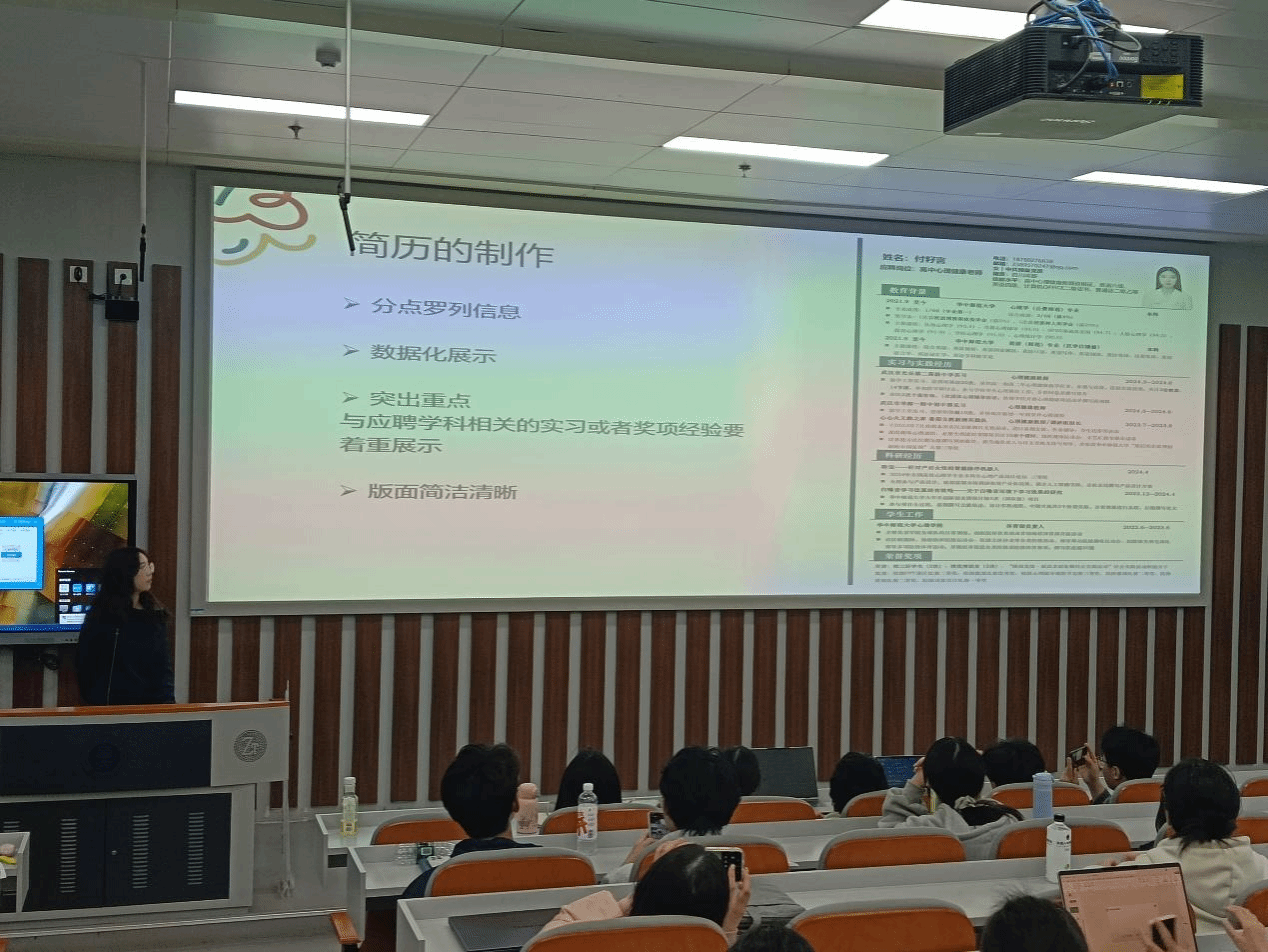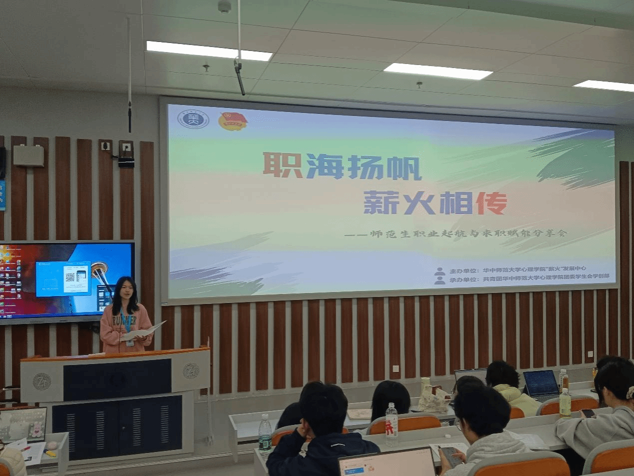 华大青年讯(通讯员 杜思踰 李金蕾)为了精准对接师范生发展需求,助力学生明晰职业规划,3月23日晚,心理学院于南湖综合楼N215教室举办 “职海扬帆,薪火相传——师范生职业启航与求职赋能分享会”,吸引了三个年级近两百名师范生参与。