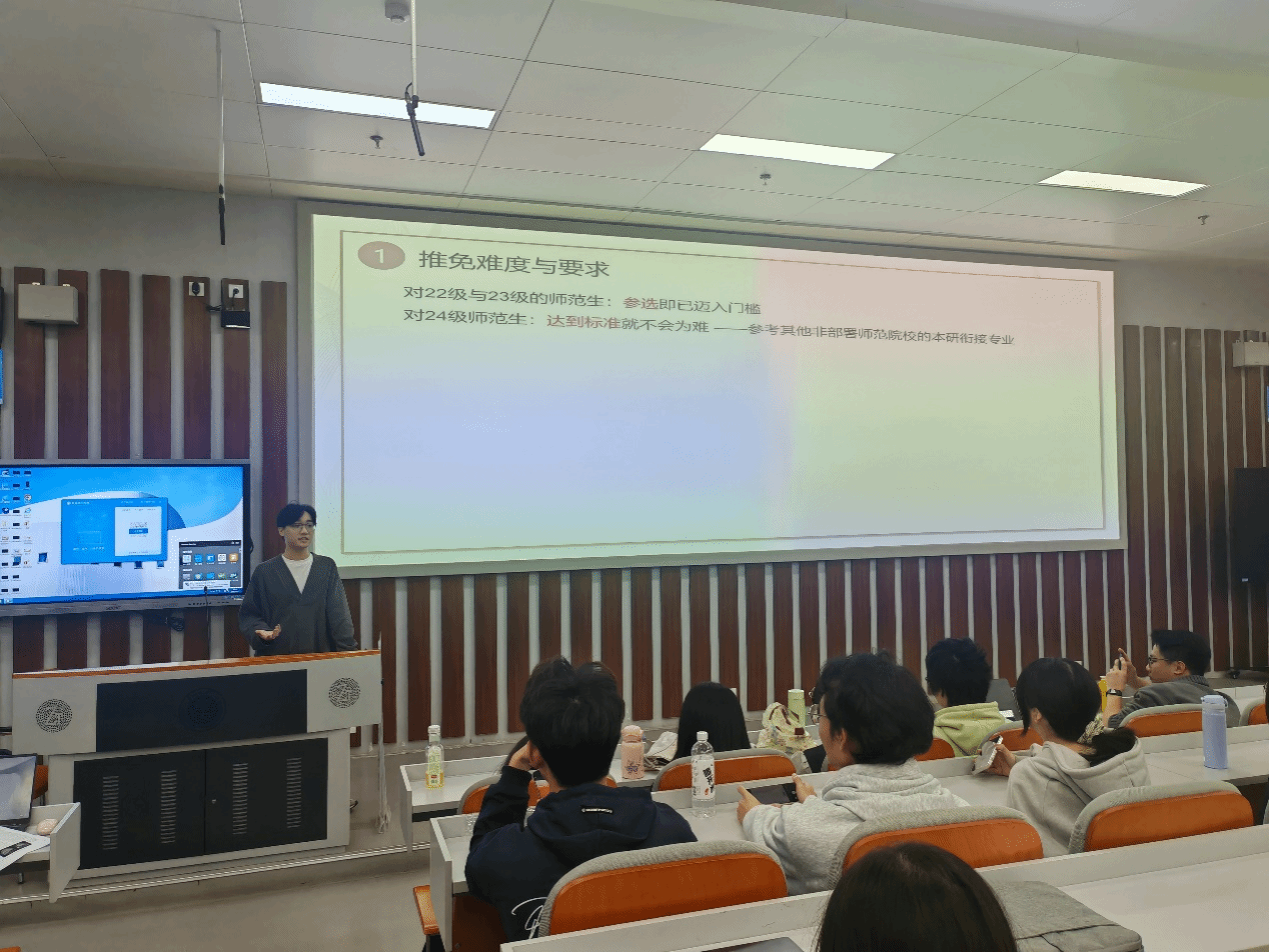 活动第二环节由通过“4+2”本研衔接政策的黄晟雨、陈冠龙主讲。他们结合最新政策文件,解析推免资格要求并拆解面试环节。
