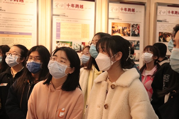 走过百年辉煌,迈步十年跨越,同学们在这方寸长廊间见证了华师的成长变革。讲解员从人才培养与“以生为本,以师为先”的办学理念,讲到校园文化和“忠诚博雅,朴实刚毅”的华师精神。博雅博爱博学的校园文化体系引起同学们的共鸣,大家对此进行讨论交流。
