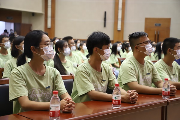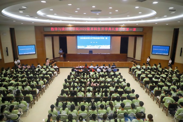 数统学院2019级本科生周海倩以自身亲身经历与2022级新生共勉。回首过往,周海倩将经验凝聚成三个词:锐意拼搏、坚持不懈、慎思笃行。“而面对未来,你我皆为新生”周海倩希望同学们能静下心来把“冷板凳”坐热,脚踏实地,仰望星空,平凡生活中亦能实现自己的价值。新生代表叶丽杉与大家分享了选择数学的初心,号召全体新生,以梦为马,不负韶华,响应时代号召,书写有为人生。