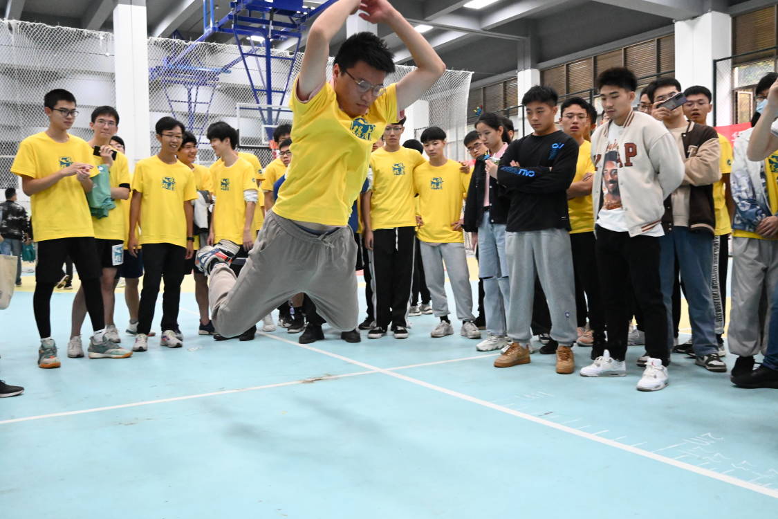 在比赛期间,赛场旁的台阶上站满了加油助威的数统学子,他们的掌声与欢呼声为紧张的赛场增添了活力与朝气,营造出良好的比赛氛围,体现了数统学子团结友爱、相互鼓励的团队互助精神。赛后,男子跳远选手吴文坚表示:“此次跳远比赛是人生中一次难忘的体验。作为参赛选手,我不仅增强了自身体能,锻炼了身体素质,最终还取得了项目第一的好成绩,为学院增添荣誉,贡献了自己的一份力量。”