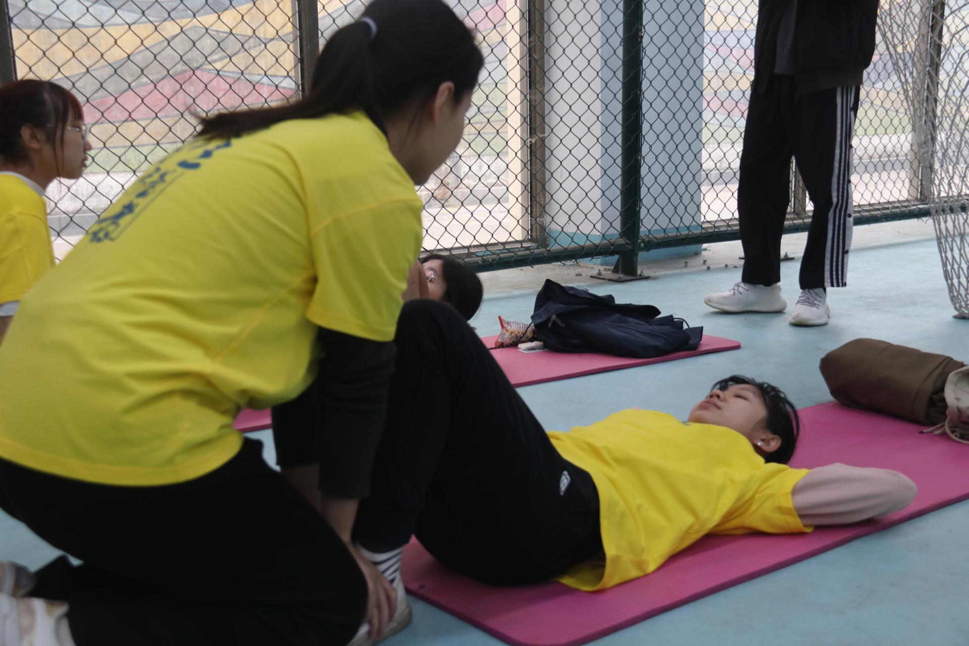 参赛选手中,傅子芸和王虹霄去年就已经参加过仰卧起坐项目,比赛前他们为其他选手们讲解动作要点,并分享比赛经验,互相鼓励。随着裁判组一声令下,一组组比赛正式开始。一分钟的时间里参赛选手们咬牙坚持,努力保持频率稳定,腹部发力,抓住每一秒的时间,挑战极限,超越自我,用拼搏抒写勇气和力量,用团结传递激情和梦想。