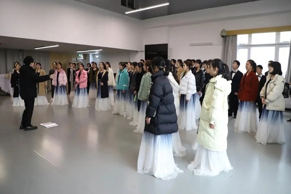 经过了近一年的排练,“数韵”师生合唱团在一次次歌唱中互帮互助,不断提升实力,领奖台上的荣誉离不开每一位合唱成员的配合和工作人员的付出。演练厅内,他们身着盛装,互相加油打气,紧张有序地进行着最后的排练。