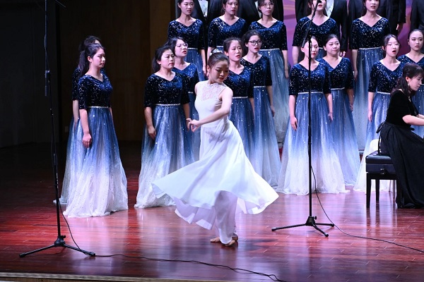 赛后,“数韵”师生合唱团成员黄雨玥表示:“虽然之前没有接受过专业的训练,也没有相关经验,但在一次次磨练中我和大家一起克服重重困难,感受音乐带给我们的美好。演出的成功离不开每一个人的努力。”以美育人、以文化人。本次数统学院呈现了经典红色歌曲与器乐作品,将舞蹈与音乐巧妙融合,传承历史,演绎经典,展现青春风采,献礼120周年校庆。数统学院未来也将继续营造良好美育育人氛围,助力校园文化建设。