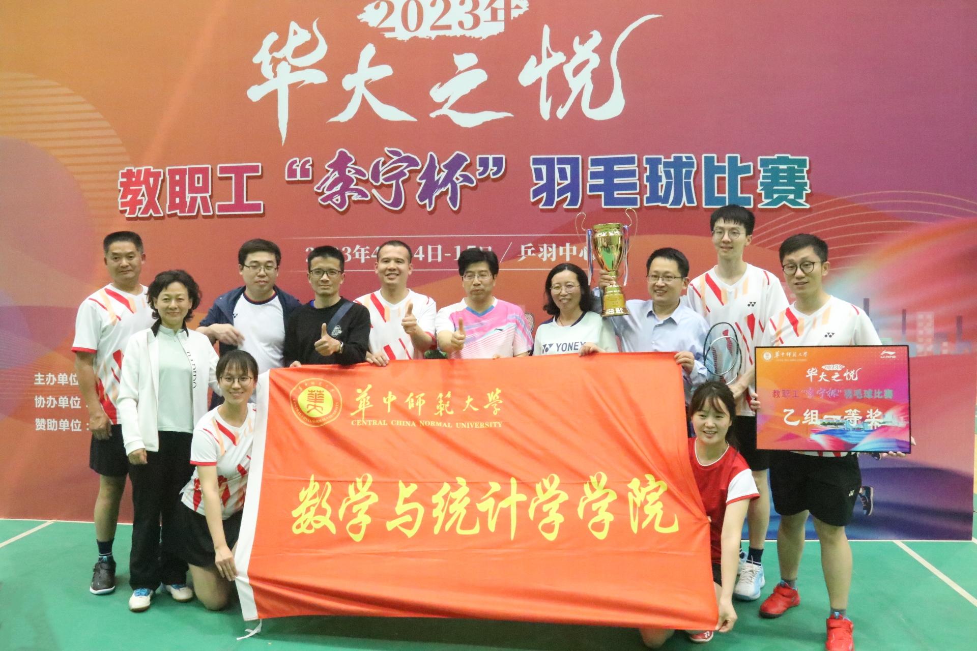 华大青年讯(通讯员 雷恩怡)4月14日至15日,华中师范大学2023年“华大之悦”教职工羽毛球比赛在乒羽中心举行。本次比赛以部门工会为单位报名团体混合赛,比赛采用五局三胜制。数学与统计学学院(以下简称“数统学院”)教职工队在经过数场比拼后取得了乙组第一名的成绩。