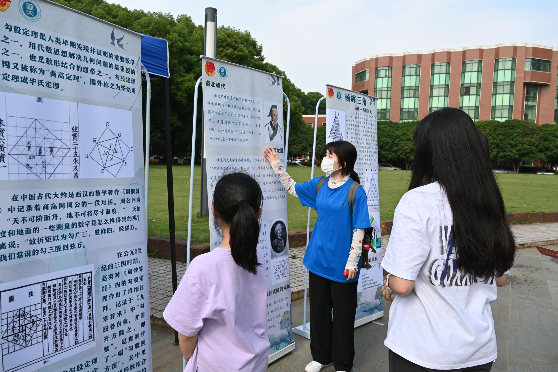 华大青年讯(通讯员 刘柏贞)为进一步营造浓厚的校园艺术文化氛围,大力发展素质教育,推进校园精神文明建设,5月19日下午,数学与统计学学院(以下简称“数统学院”)于博雅广场举办“数心逐梦百廿年,艺展献礼二十大”主题中华优秀数学传统文化嘉年华活动。数统学院党委副书记田俊、团委书记武靖、团委副书记龙星宇出席本次活动开幕式。此次活动对学校全体师生开放。