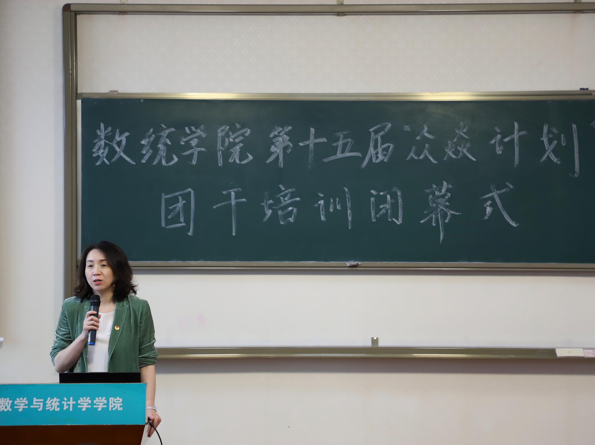 “‘人生强者’从来不是标准,而是努力的态度和方向” ,数统学院党委副书记田俊上台致辞。她首先对通过本次培训的全体负责人表示了祝贺,随后指出:“团学骨干是数统学院的‘头雁’梯队,带领全院的团学工作在更多的舞台上绽放属于数统的光彩。”她对学术干部们提出了三点要求:第一,要有坚定的立场,时刻谨记自己是一名执行者。第二,迎难而上,兼顾工作和学习。第三,发扬团结协作的精神。她希望在座的“头雁”们能够发挥合力,带领数统学院的“群雁”起飞,一起创造更多辉煌。最后,田俊宣布本次“众焱计划”团干培训闭幕式正式结束。