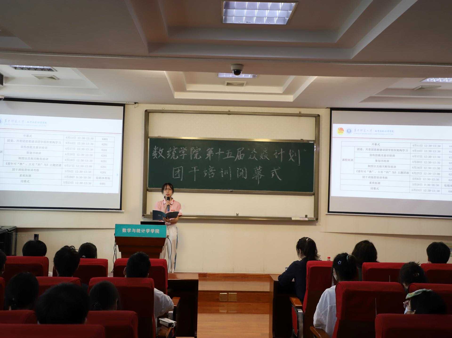 华大青年讯(通讯员 李欣雨)5月23日中午,华中师范大学数学与统计学学院(以下简称“数统学院”)第十五届“众焱计划”团干培训闭幕式于6401举行。本次活动由团委副书记黄雨玥主持,数统学院党委副书记田俊、团委书记武靖、团委副书记龙星宇,学生团委副书记董嘉怡、张璇,学生会主席团成员肖宇、李天铭、舒嘉怡,融媒体中心主任王姚楚凡、副主任韩铭城出席本次闭幕式,数统学院团委学生会全体负责人到场参与。