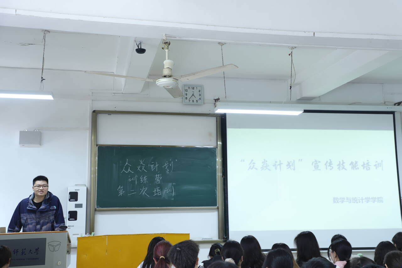 华大青年讯(通讯员 严翎 刘朕铨)为加深团委、学生会成员对宣传工作的了解,提高同学们的信息素养与媒体素养,4月28日中午,数学与统计学学院(以下简称“数统学院”)团委、学生会“众焱计划”训练营第二次团干培训于6201教室举行。本次培训由数统学院团委宣传中心主任梁怡龙主讲,团委、学生会全体负责人参加。