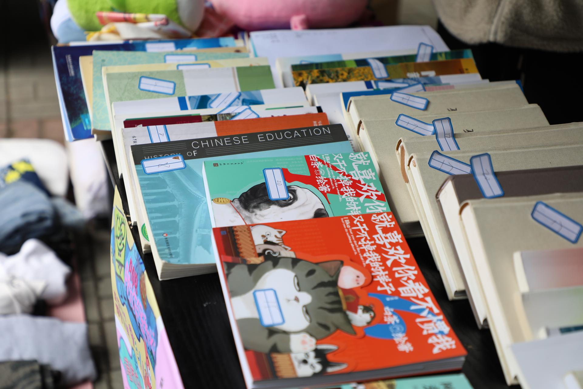 活动现场设有跳蚤市场区、权益宣传区和互动游戏区。跳蚤市场区设置了多个摊位来出售同学们捐赠的二手书籍、衣物、电子产品等多种物品。通过捐赠与购买的方式,实现了校园二手物品的循环利用,有效减少了资源浪费,提高了同学们的环保与节约意识。此外,本次活动义卖所得钱款将捐赠给困难地区品学兼优的高中生,帮助其完成学业,传递冬日的温暖。