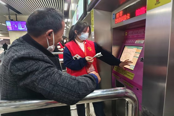 到达汉口地铁站后,志愿者们先向工作人员了解了各个岗位的具体职能,接着由负责人韩华组织志愿者完成签到并向他们强调活动流程与注意事项。在警卫室领取志愿者马甲与工作证后,各志愿者在工作人员的带领下来到不同的岗位,分别开展咨询引导、协助购票、维持秩序等工作。