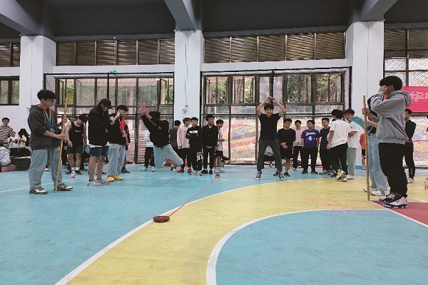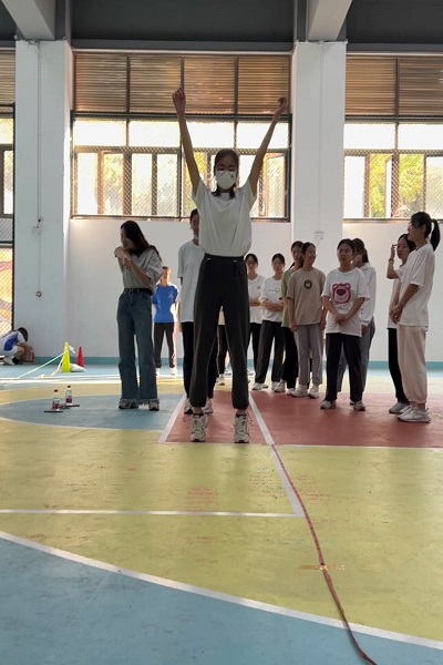 立定跳远,是刹那间的空中漫步。体育馆内的灯光下,是跳远运动员们积极热身的身影,他们舒展着身体,为了向更远的目标跃去。他们腿部发力,向远处跃去。在各位跳远运动员的共同努力下,经管学院取得了团体第二名的好成绩。