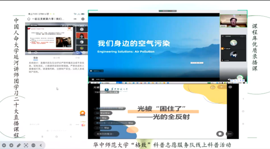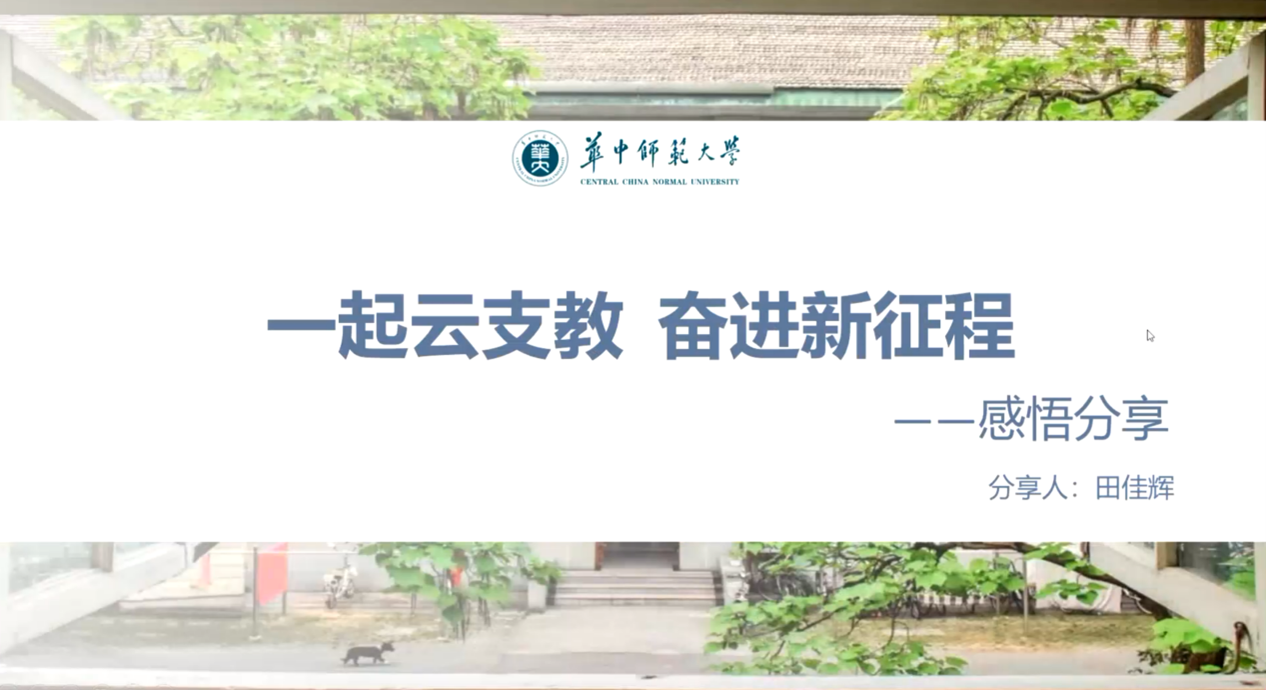 首先是温怡婷同学分享自己参加“一起云支教,奋进新征程”主题公益活动的经历,展示了她的“云端”支教故事。在活动过程中,她通过“一起云运动”,“一起云阅读”,“一起红色寻访”,“一起云课堂”四种方式与小朋友们一同互动,共同学习、共同进步。云端的链接是无形的纽带,波动的信号是流淌的真情。遇见、陪伴、成长,云支教带给了她无限的温情与爱意,而她也正用自己的实际行动传播着华师大爱与华师温暖。