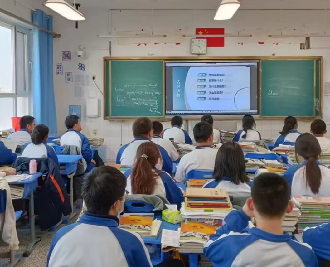 课程开始时,陈世德向同学们详细介绍了学校学院的基本情况,也表达欢迎同学们报考。针对高中学生知识结构特点,陈世德通过“股票是什么?”“为什么买股票?”等问题引入,为同学们讲解了股票的本质特征和发行目的,利用“假设自己和朋友每人出100万”的方法生动形象的为同学们讲解“内部资金”“债务融资”“股权融资”等金融词汇的内在联系。同时,借助“美林投资时钟”等理论向同学们详细的介绍了“怎么买股票”以及“什么时候买股票”“买哪个赛道的股票”等实际问题。