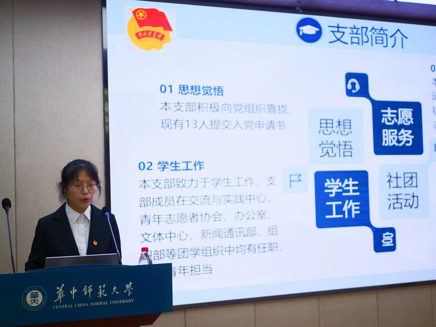 活动伊始,主持人付欣悦对本次活动评选规则进行了介绍。接着各团支部负责人就支部风采及展示方案设计依次进行答辩。16个团支部负责人从支部简介、支部学“习”成果、支部思想建设等多个方面展现了支部成员积极向上的精神风貌和充满创新活力的团支部建设情况。