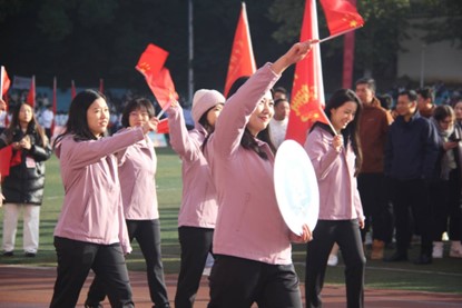 随着裁判员一声哨下,比赛正式开始。老师们精神抖擞,充分发扬团队精神,集体协作、默契配合,伴着“一二、一二”的口号,他们齐心协力,奋勇争先。赛场内,老师们士气高扬,团结一心,沉着参赛。赛场外,同学们组成的啦啦队为老师们鼓劲加油,呐喊声此起彼伏,欢呼声一浪高过一浪。