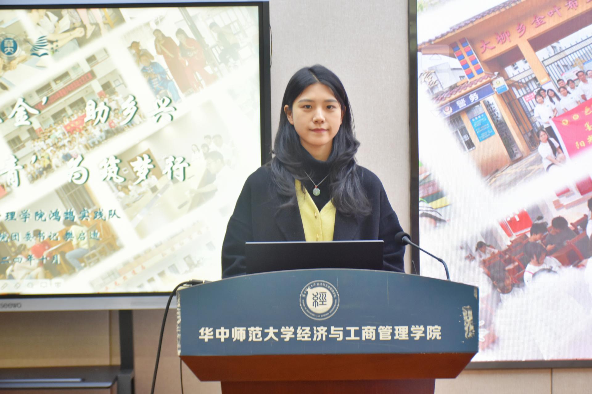 会议伊始,樊启迪以“‘青’力‘青’为筑梦行”为主题,围绕如何更好开展社会实践活动展开分享。从为何做社会实践到如何做社会实践,她通过一张张照片阐释经管学院鸿鹄实践队躬身力行参与社会实践的历程。她提到,“从基层走出来的,才能更理解基层”,社会实践活动为青年学子提供了实地考察和志愿服务的宝贵机会,有助于他们更深入地了解社会发展需求,提升社会责任感,为自身发展赋能。