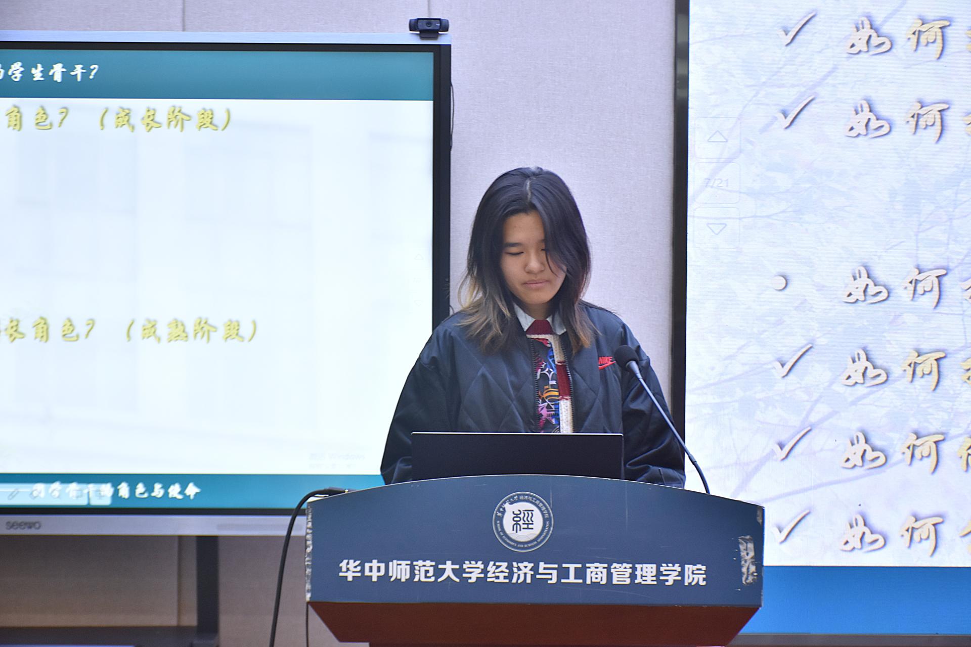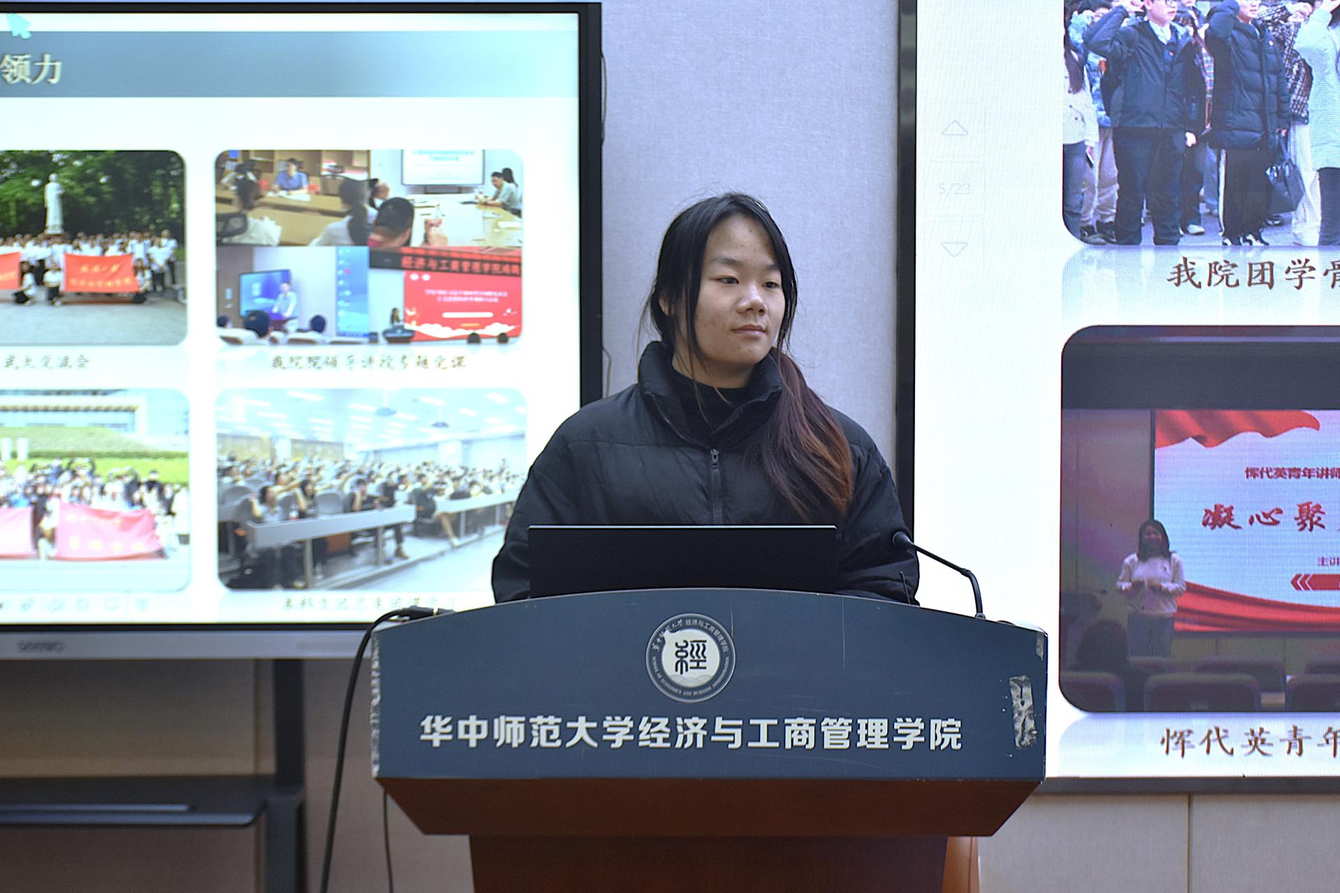 华大青年讯(通讯员 万静雅 余淑萍)为提升团组织的吸引力和凝聚力,加强基层团组织建设,激发青年创新活力与创新精神,12月17日,由共青团华中师范大学委员会主办,经济与工商管理学院(下简称为经管学院)承办的第23期共青团改革创新赋能荟在南湖综合楼N10127举行。此次赋能荟以“深学细悟共笃行,奋楫扬帆勇担当”为主题,由经管学院团委书记樊启迪、团委副书记彭怡婷和鸿鹄团支部书记冯海依作经验分享。