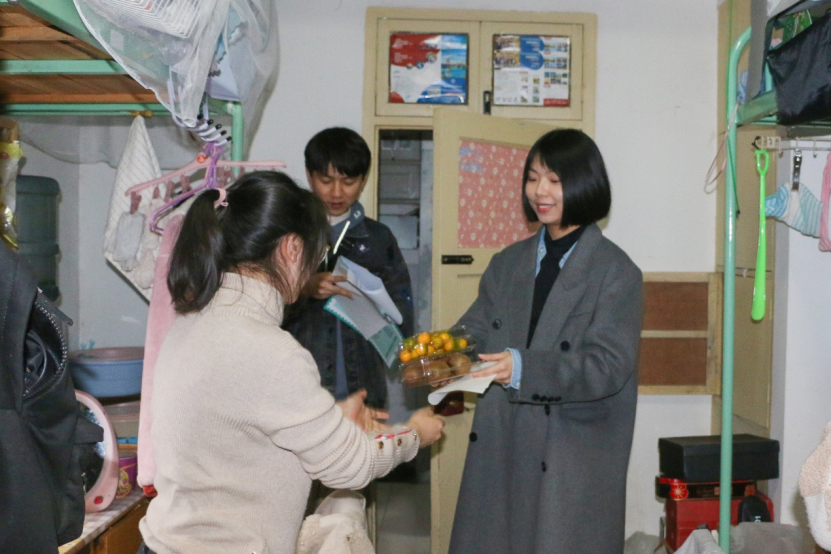 学生宿舍是大学生在校期间日常生活和休憩的重要场所,是学生安全稳定工作的重要阵地。本次辅导员走访寝室活动不仅为同学们带来了生活上的关怀,进一步拉进了师生之间的距离,也提高了同学们的安全意识,引导同学们养成更健康的生活习惯。走访结束后,文学院2020级学生邹欣欣表示:“辅导员在冬季到来之际走访寝室,这给我们带来了别样的温暖。不管是送水果还是进行寝室安全教育,都让我感受到了老师和学院对我们年级同学的关心。”