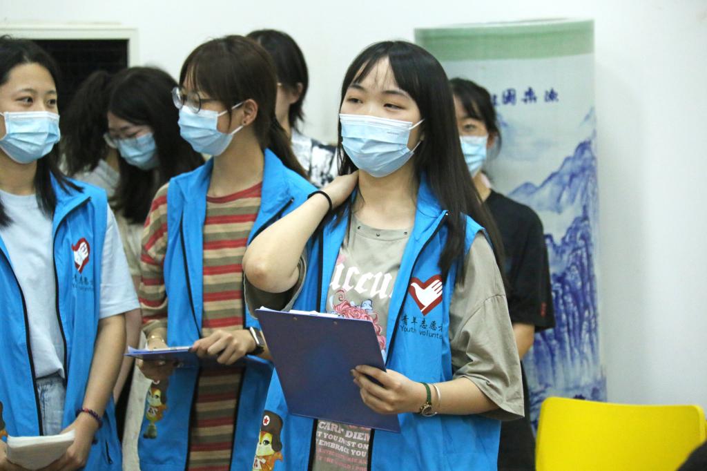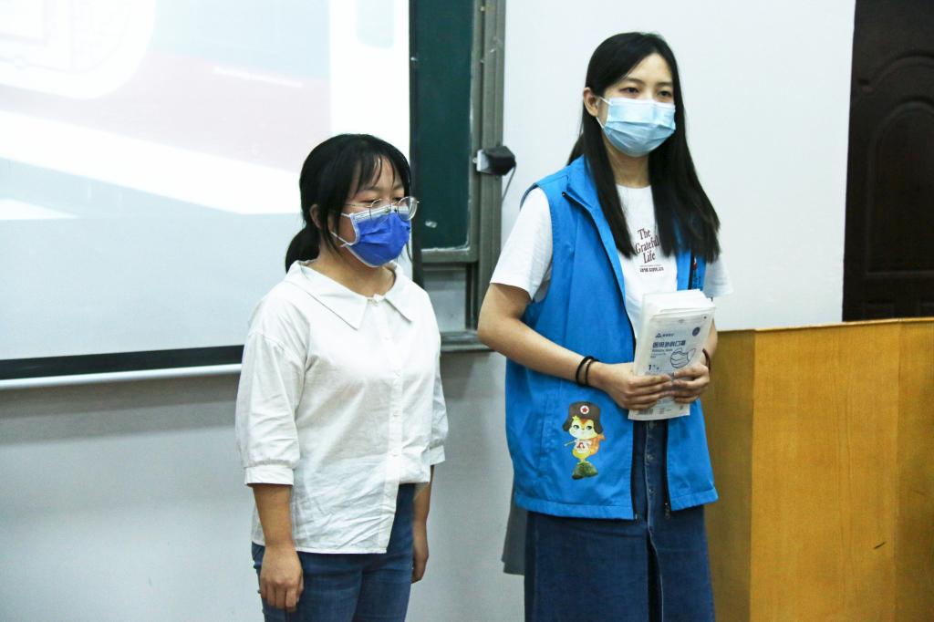 话剧开始,非师20级基地班团支部成员带领观众走进了习近平总书记曾参观过的东湖社区。在这里,社区志愿者们讲述他们的抗疫故事,诠释新时代青年学生的责任担当。基地班同学备受感动,汪昕菲还向志愿者们分享了文院一名党员老师患病期间坚持上课,痊愈后又捐献血浆的故事。有的基地班同学还在武汉抗疫精神的感召下加入志愿组织,以星星之火传承人间大爱。