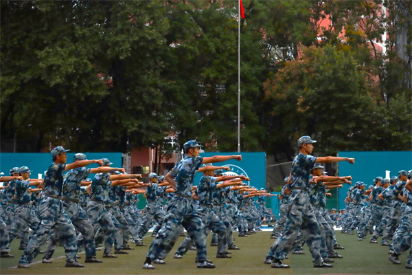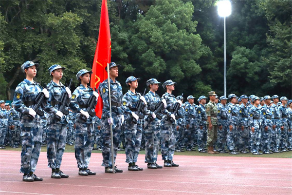 下午5点,各位领导、老师、来宾及新生们全部到场。军训团全体成员听从军训团团长王斌斌的指挥,迅速到位,排面标齐。获得赵凌云指示后,进行大会第一项,全体肃立,奏唱国歌。
