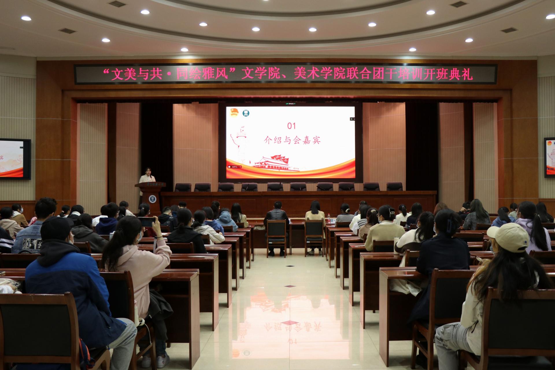 开班典礼于九点三十分准时开始,文学院党委副书记李红雷、美术学院党委副书记刘倩、文学院团委书记倪菁、美术学院团委书记孙宇、文学院22级辅导员崔宏博、美术学院22级辅导员刘志凤、美术学院22级辅导员李涵瑜出席本次活动。本次开班典礼由文学院团委(学生)副书记邹秦丹、美术学院团委(学生)副书记黄之扬主持。